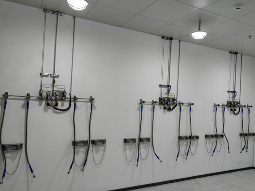 3.5N離氮氣、氦氣、留出足夠的氣負責人線利用OD1/4”(6.35mm)的排水管,支線利用OD1/4”(6.35mm)的排水管。用悍接三通管件區分出支路來對儀器采取供汽。